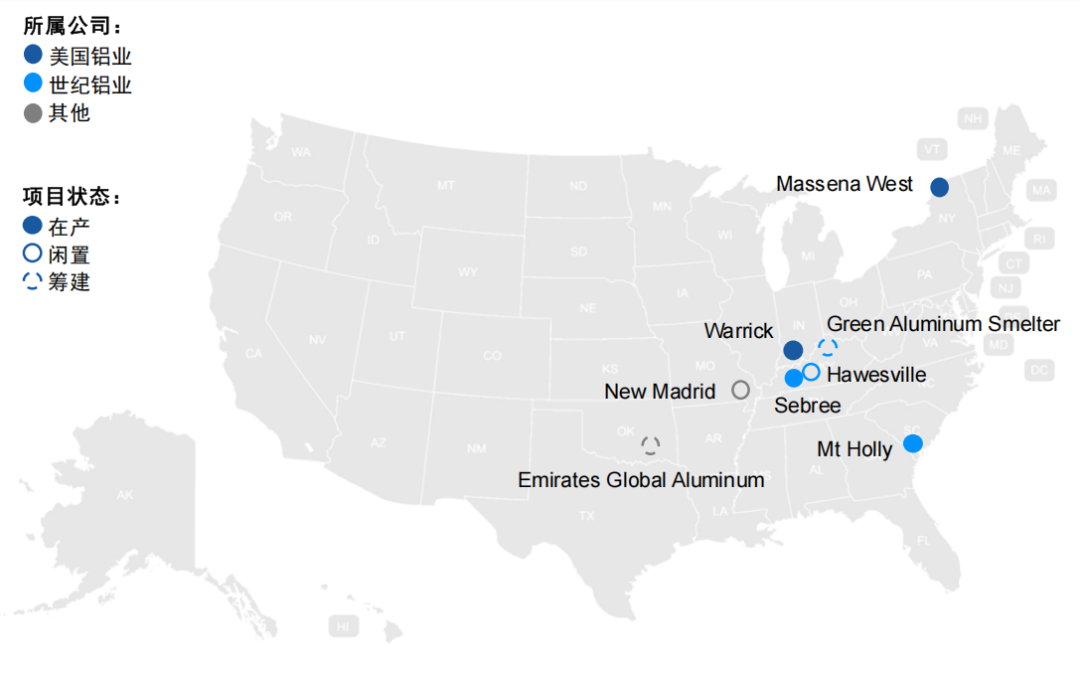 注:世纪铝业筹建中的Green Aluminum Smelter选址仍待定(优先考虑肯塔基州)