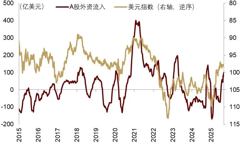 弱美元周期带动全球经济共振修复,叠加国内外长线资金支撑,将对A/港股带来提振。弱美元推动全球经济共振修复,带动国内出口增速和利润改善。全球货币政策和流动性都趋于宽松,推升A港股估值。同时,全球资金更多流向增长弹性更高的新兴市场,以寻求更高的收益。在弱美元和国内政策催化下,我们认为更多海外资金和长线资金入市有望从资金端提振A股。从结构上看,以科技和出海为代表的“新经济”在基本面和回报方面有望持续表现。此外,在扩内需、反内卷和海外需求拉动下,国内企业盈利或出现改善,带动消费等内需板块补涨。