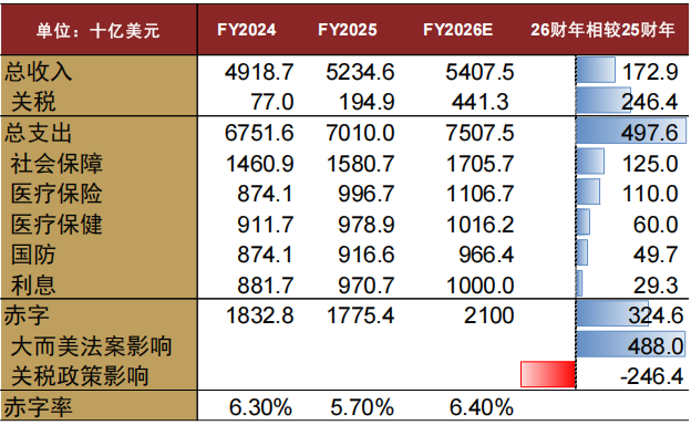 图表14:大而美法案的赤字影响在2026财年骤增
