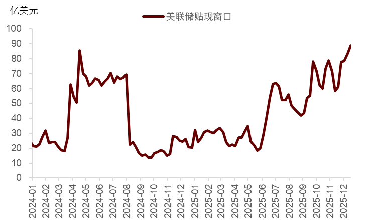 泡沫加速的过程可能带来市场波动加大。本质上来讲,泡沫加速意味着私人市场拆借需求继续增加。从12月开启扩表以来,SOFR与ON RRP、IORB利差有所回落但仍偏高,贴现窗口借款需求仍较大(图表23),说明融资压力依然存在,在美联储足够量扩表之前,金融市场可能间歇性出现“惊弓之鸟”现象。尤其是在降息+只购买短债的情况下,我们预计长端利率很可能陡峭化,如果美债波动显著加剧,仍恐使得高杠杆高规模的基差交易被迫平仓而加剧跨资产抛售(参见《美国流动性冲击、重启QE与主权财富基金》)。较有效的解决办法是加速加量加久期投放流动性:我们预计2026年6月后美联储可能开启扩表第二阶段,购买长债甚至投资级企业信用债ETF,有望显著压低十年期美债利率至4%以下、并有效压缩企业债风险溢价。最后我们强调,无论美联储购买短债或长债,本质都是债务货币化MMT,这种情况下,流动性往往充裕,使美元处于趋势性贬值通道。