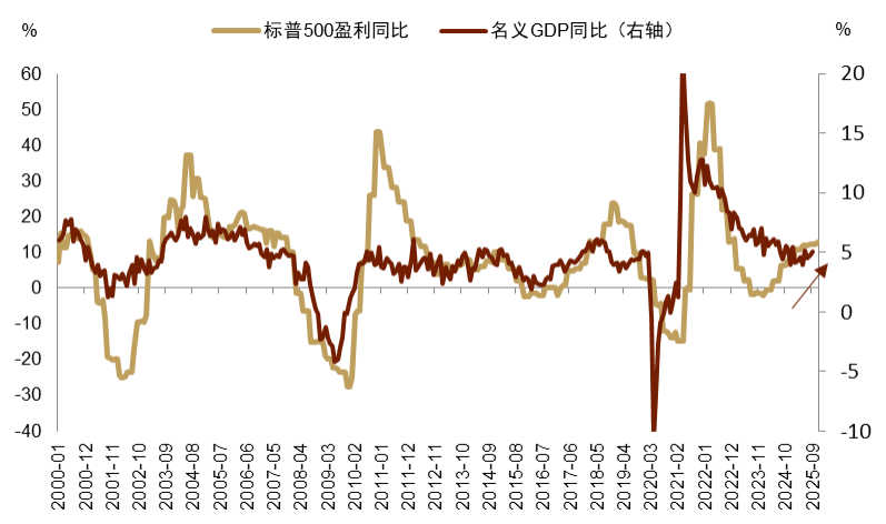 整体来看2025年美国经济保持了一定的韧性,主要受益于强劲的AI与工业设备投资,但不可否认的是名义经济周期复苏进程偏慢(图表1),主要症结有三。