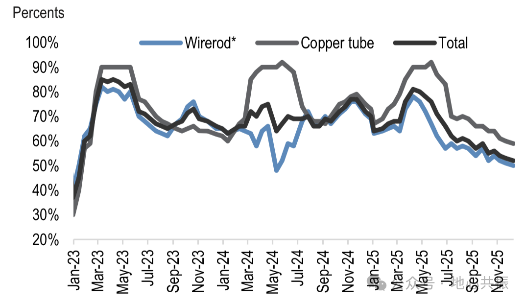 图:中国铜半加工企业开工率