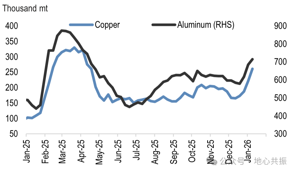 图:中国可见铜铝库存