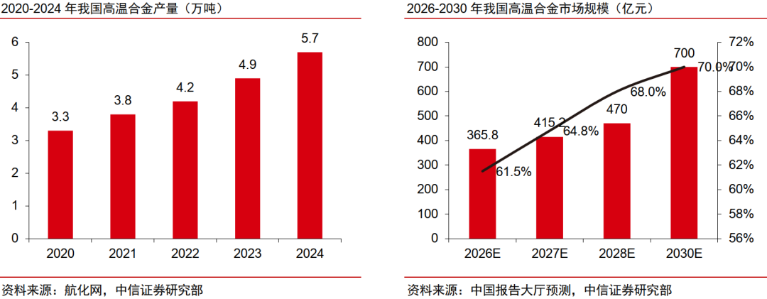 4)高温合金:商业航天发动机热端的材料中枢。主要应用于涡轮泵、推力室外套、喷管、机匣等高温受力部位,针对不同部件,形成了精密铸造、环锻/模锻、粉末冶金和增材制造等多种工艺路径。