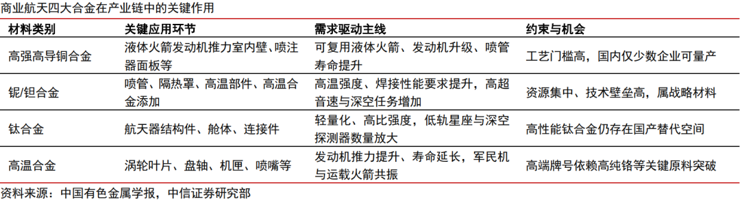 ▍四大核心合金材料在商业航天应用中形成了系统性的耦合关系。