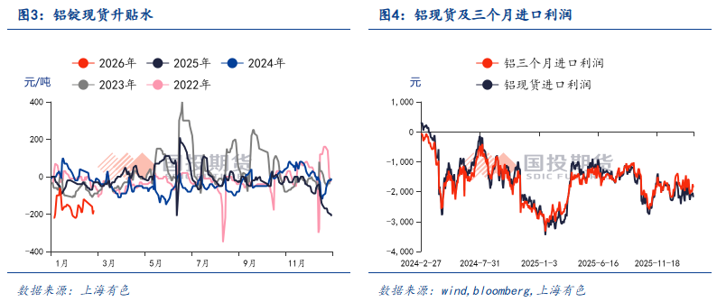 开年以来宏观主导方向,有色金属一度脱离基本面大涨,随着美联储新主席人选公布改变未来宽松路径预期,贵金属和有色大幅回落后陷入盘整。3月两会、美联储会议、美国关税、美伊局势、特朗普访华等均将对市场产生重要影响,宏观不确定性强,基本面弱势现实和海外减产预期相搏弈,沪铝震荡等待宏观指引和需求验证,下方关注23000元位置支撑。跨期方面,库存高企,现货疲软,正向结构暂难逆转,跨期机会不佳。现货贴水较大,买现抛期具备一定安全边际。