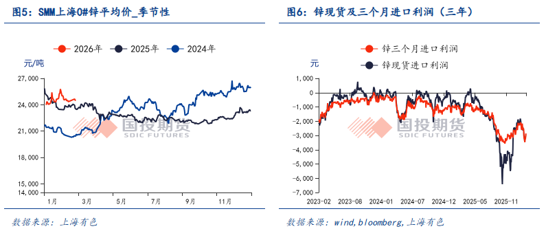 展望3月,矿紧略缓解,消费回暖,锌价震荡。1)国内矿紧略缓解:海外主要矿企2025年财报陆续发布,全年增量如期兑现,受嘉能可、泰克下调2026年锌精矿产量预期影响,2026年海外矿供应增量不及预期。国内火烧云铅锌矿增量继续兑现,随着天气转暖,3月下旬以后北方矿山将陆续复产,SMM3月国产矿TC均价环比上涨100元至1500元/金属吨,锌精矿TC有望见底回升,但反弹空间有限,沪锌下方成本支撑强。2)春节累库不及去年,整体库存水平偏高:节后SMM锌社库较节前增加4.93万吨至20.97万吨,累库幅度不及去年。国内不同炼厂盈亏差异大,副产品收益较好背景下,整体开工积极性尚可,1月高价明显抑制下游拿货积极性,锌社库水平居近三年高位,约束沪锌反弹空间。3)消费预期向好:3月需求进入“金三银四”传统旺季,全球电力、储能需求爆发,产业链转移背景下,海外需求有望延续强劲,3月需求预期暂不悲观,跟踪去库节奏