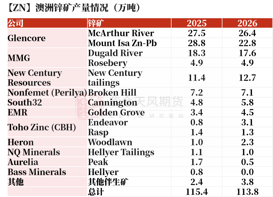 澳大利亚是全球重要锌矿供应国,2025年锌精矿产量达115.4万吨,占全球总量的10%左右,超 80%出口至中国,是国内锌矿原料的核心来源之一。