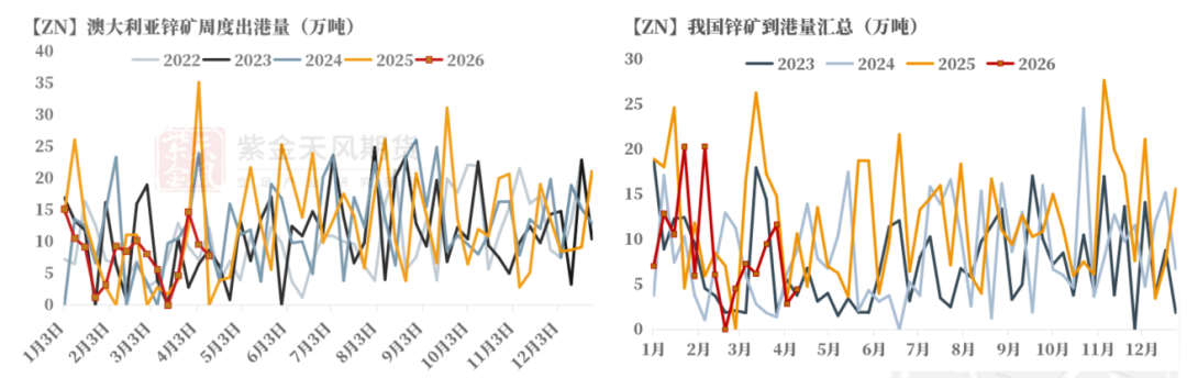当前澳洲锌矿出港量及我国锌矿到港量情况来看,略低于季节性表现;
