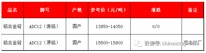 今日铝价上涨80元/吨至14170元/吨,现货铝价持续走高,再生铝工厂报价依旧企稳。国内价格上,主流大型再生铝企业报价持稳,集中于13200~13400元/吨,使用进口废铝企业报价维持13100~13200元/吨附近。